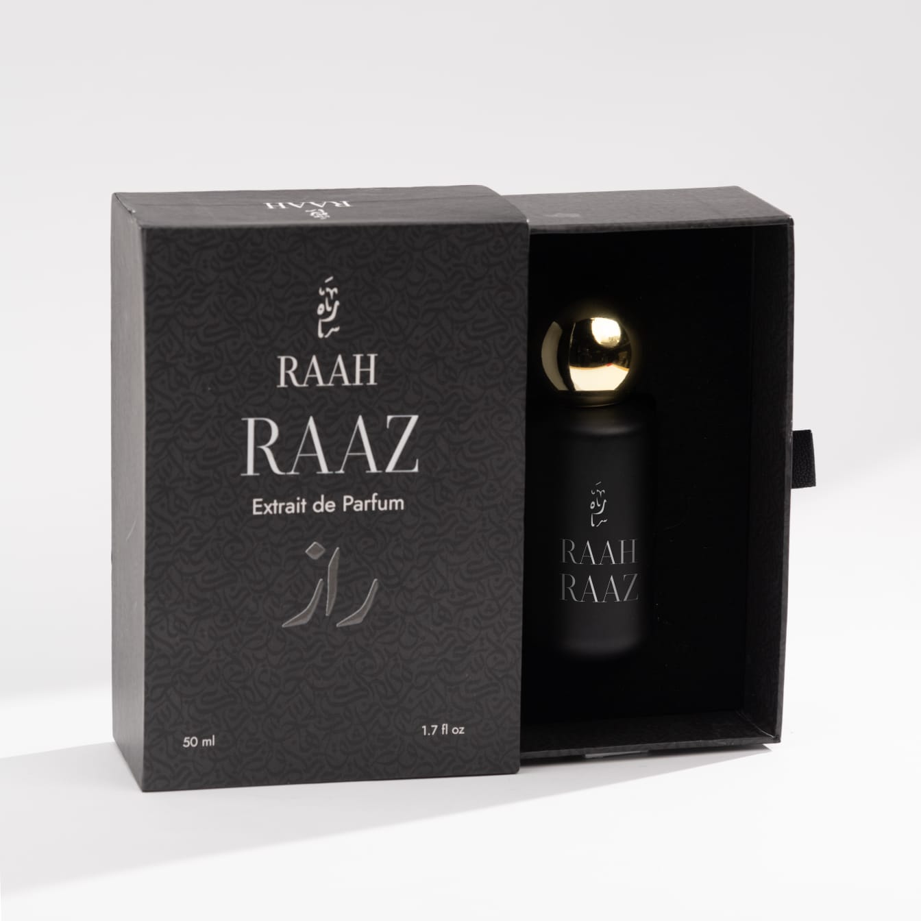 Raaz is an enigmatic fragrance that unfolds like a captivating secret. Bold, sensual, and unforgettable, Raaz is crafted for those who intrigue effortlessly and leave an air of mystery wherever they go.