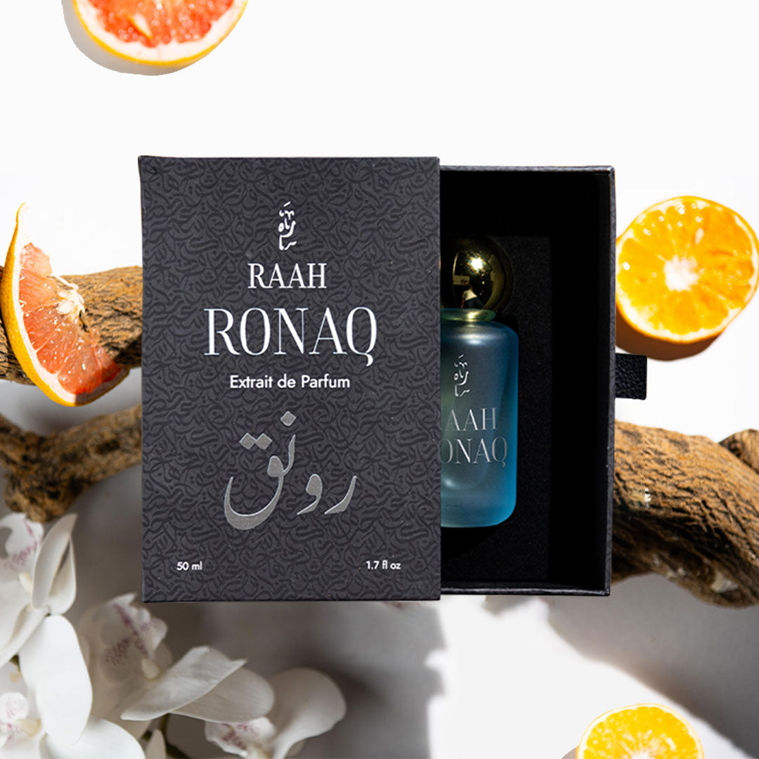 Rounaq is the ultimate expression of vibrance and charm—a fragrance that captures the energy of bright, beautiful moments. Designed for those who light up every room, Rounaq is fresh, fruity, and irresistibly alluring.